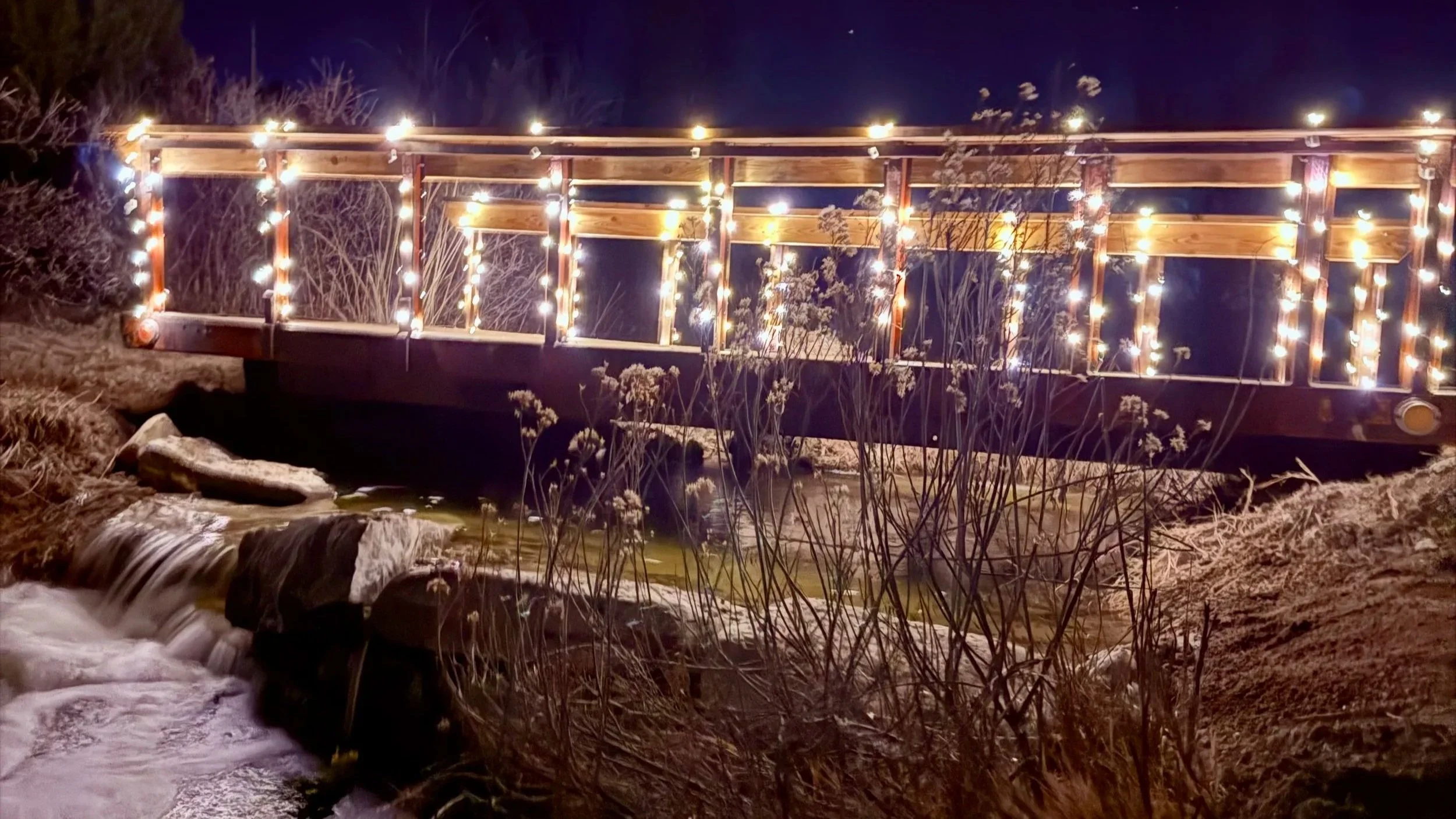 Bridge over the waterfall Wildflowers and Fireflies